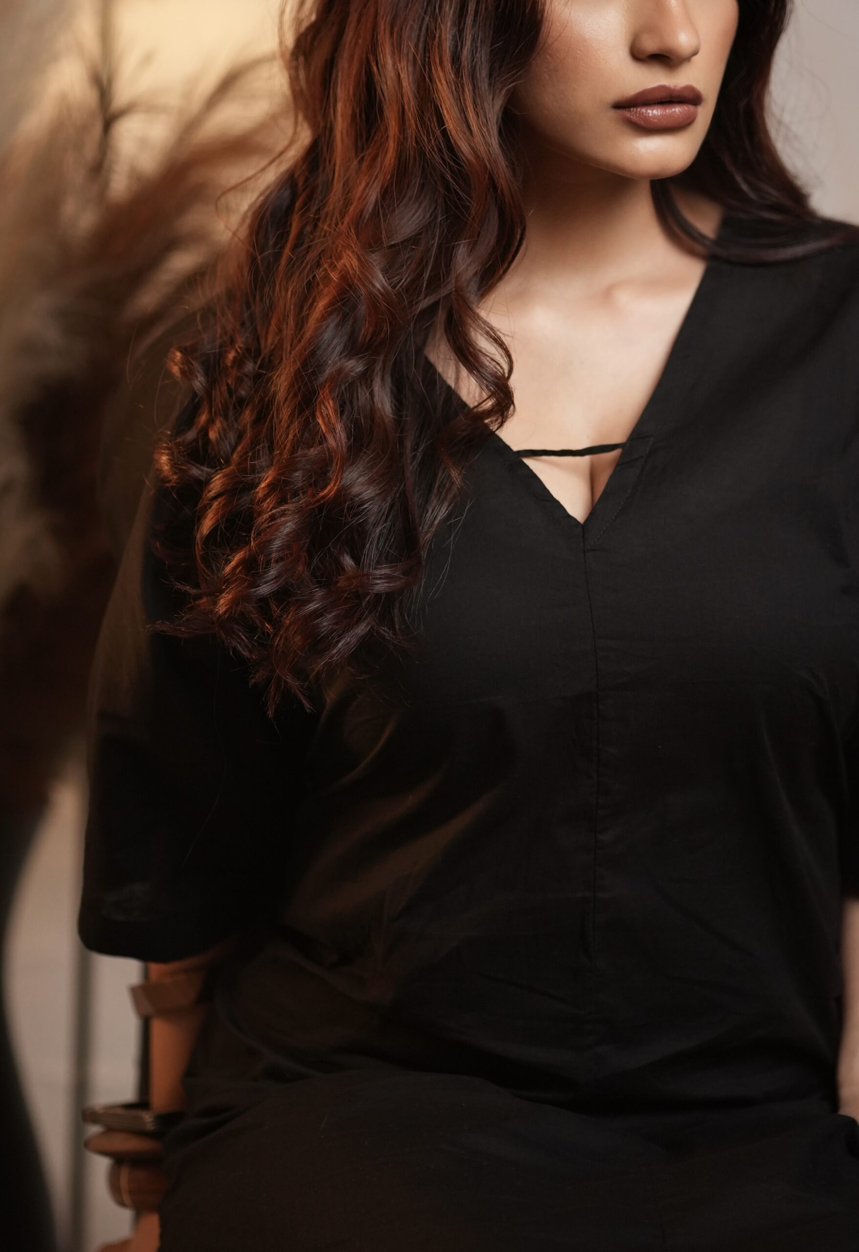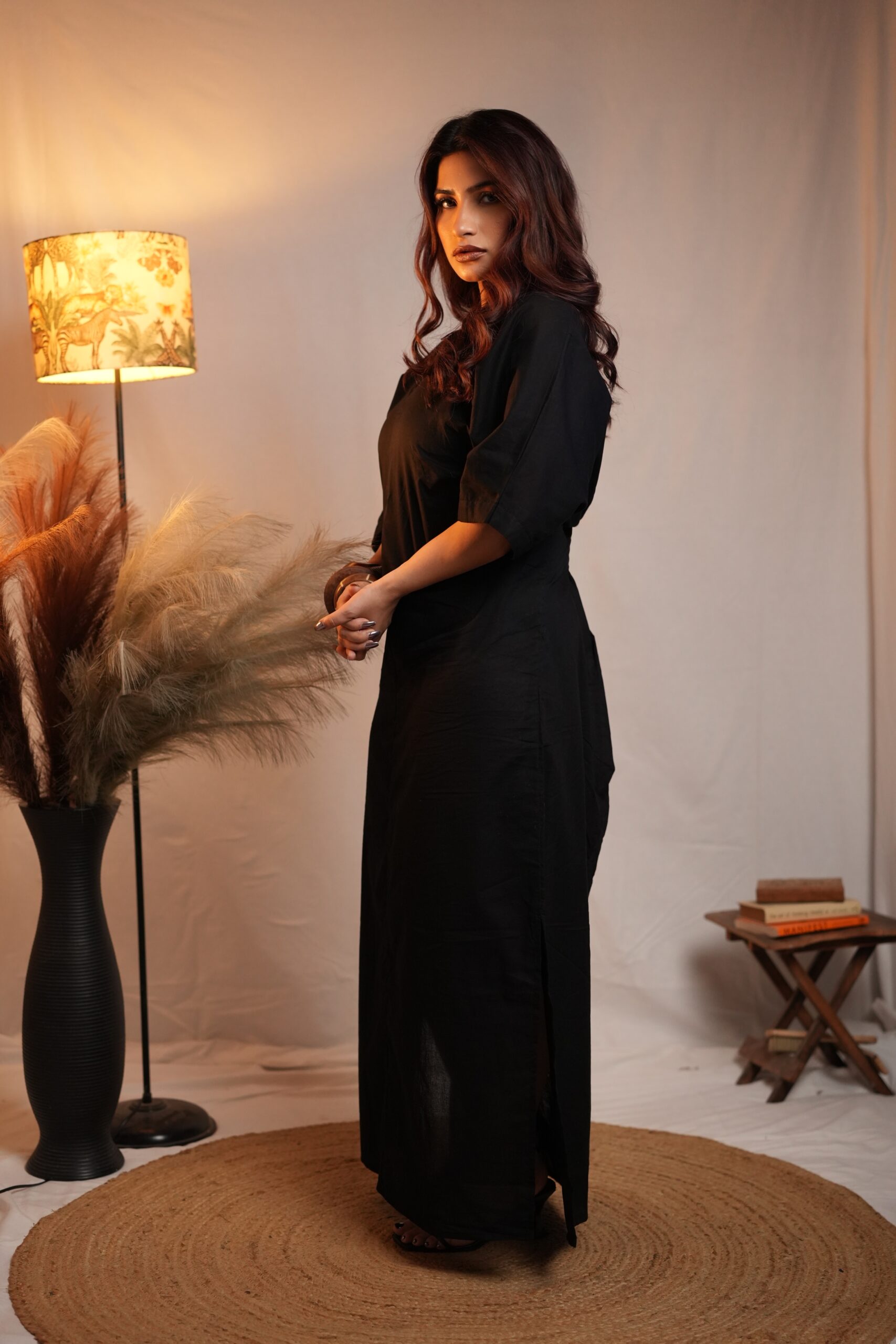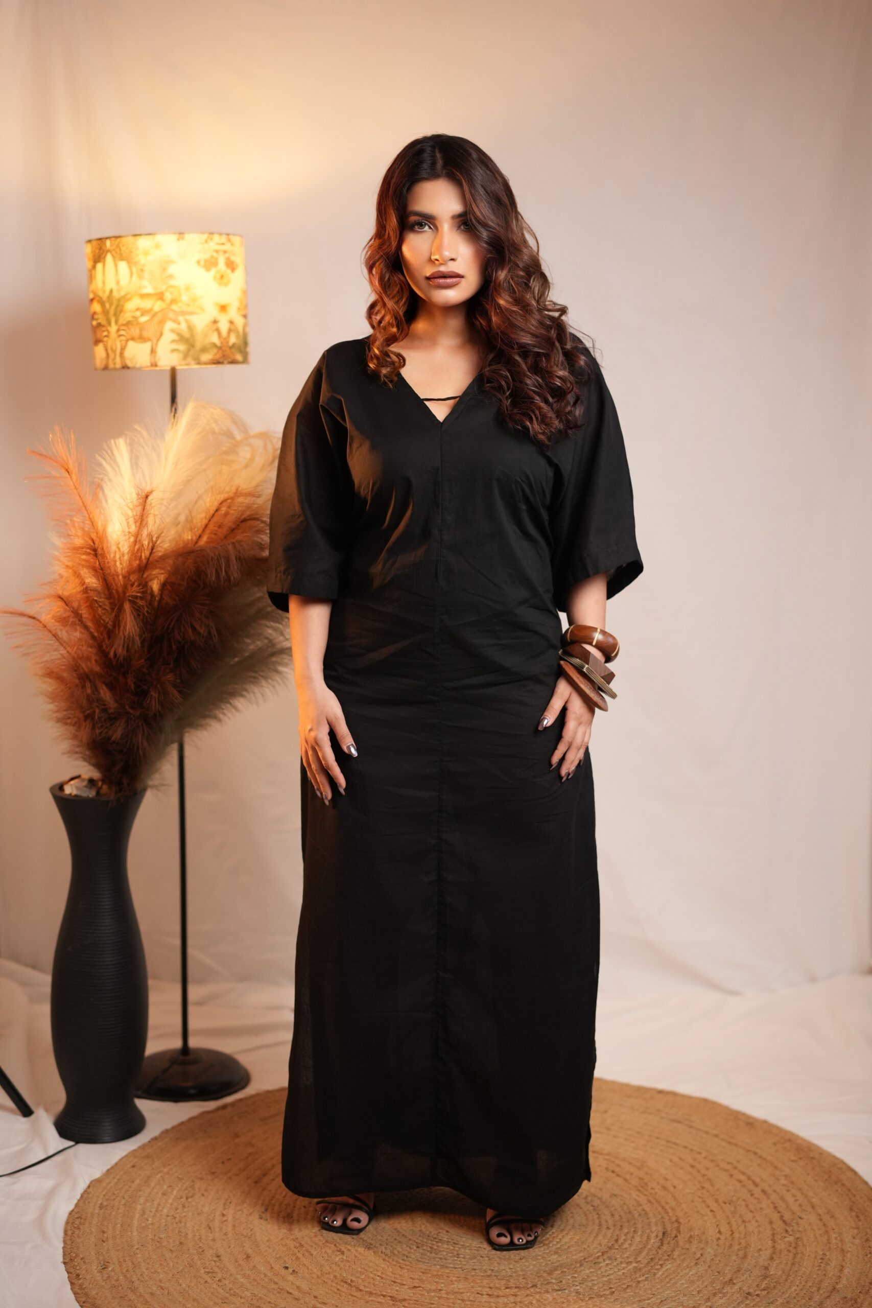 Perfect as a beach overlay, resort essential, or layered statement piece, this black cotton kaftan embodies modern summer luxury light, confident, and unapologetically refined.